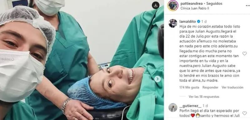 “Hija de mi corazón, estaba todo listo para que Julián Augusto llegará el día 22 de julio, por esta razón la actuación a Temuco no molestaba en nada, pero este crío adelantó su llegada”, planteó la panelista del programa Tal Cual, de TV+.