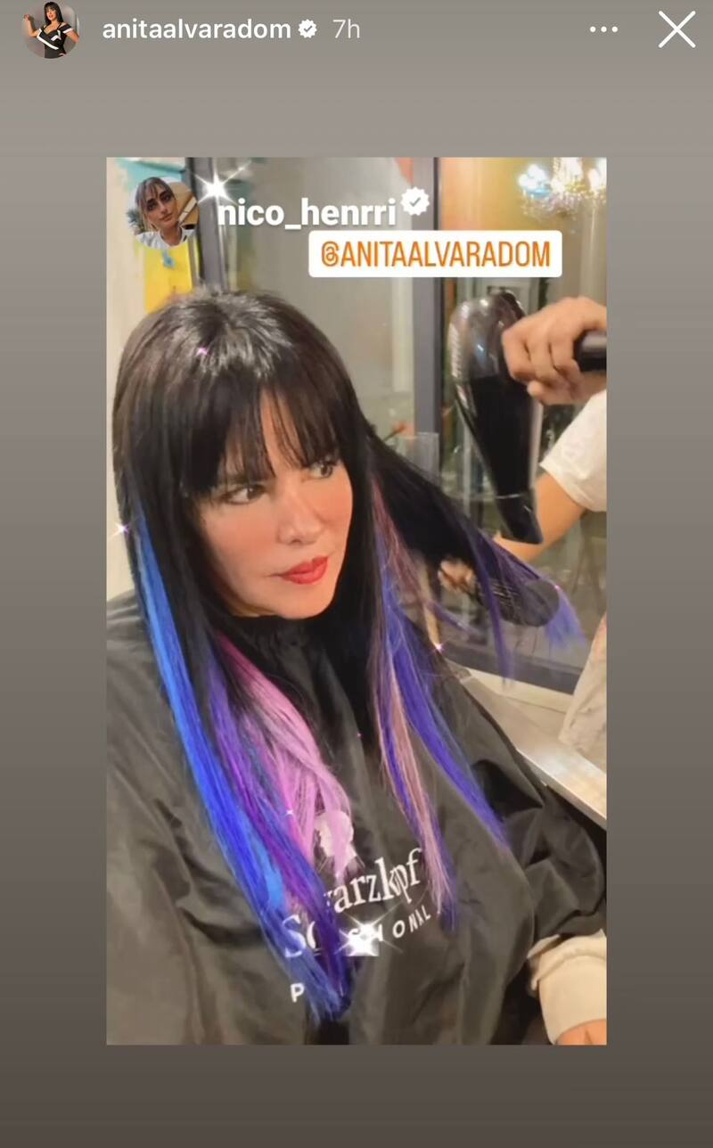 Luego, fue la misma profesional quien mostró los resultados de la transformación a la que se sometió la influencer. En concreto, Anita s la jugó con un juvenil estilo, el cual incluyó tonos azules, rosados y morados en su tradicional cabellera negro oscuro.