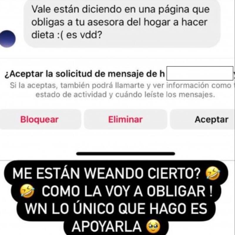 “Vale, están diciendo en una página que obligas a tu asesora del hogar a hacer dieta. ¿Es verdad?”, le preguntó una usuaria.