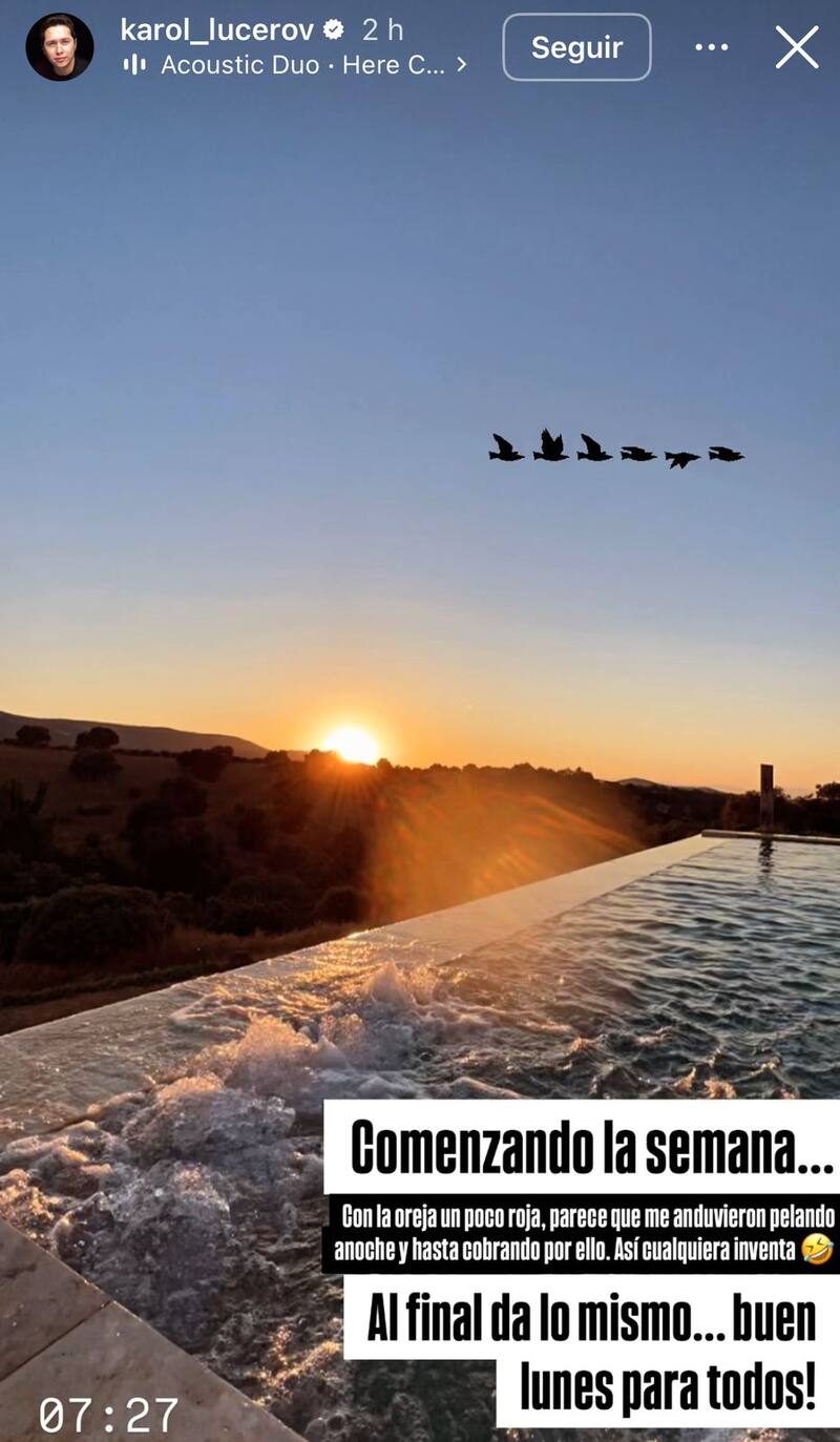 “Comenzando la semana, con la oreja un poco roja, parece que me anduvieron pelando anoche y hasta cobrando por ello. Así cualquiera inventa. Al final da lo mismo, buen lunes para todos”, escribió junto a una postal mañanera.
