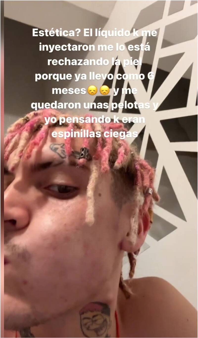 “¿Estética?”, se preguntó el artista ante su fanaticada sobre los granitos. “El líquido que me inyectaron me lo está rechazando la piel porque ya llevo como seis meses, y me quedaron unas pelotas”.