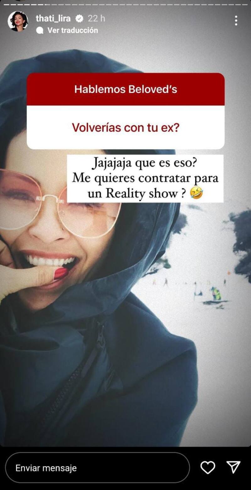 A través de sus historias de Instagram, la ex participante de Aquí se Baila contestó diversas dudas de usuarios, donde un seguidor le consultó si “volvería con su ex”.