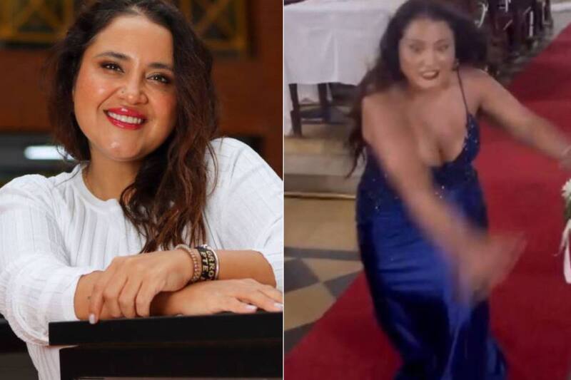 Comediante se tropezó mientras caminaba por el pasillo de la iglesia donde se casó su amiga.