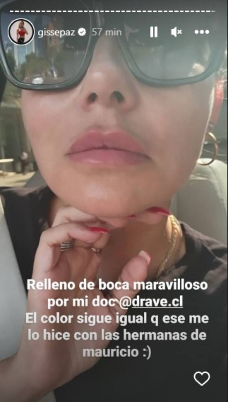 “Me puso hialuronidasa que te saca todo, no les voy a mostrar sin filtro porque tengo morado solamente”, explicó Gissella Gallardo compartiendo posteriormente un registro de sus labios.