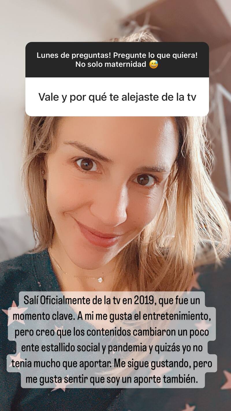 “Vale y por qué te alejaste de la tv?”, le consultó otro usuario. “Salí oficialmente de la tv en 2019, que fue un momento clave”, señaló la influencer.