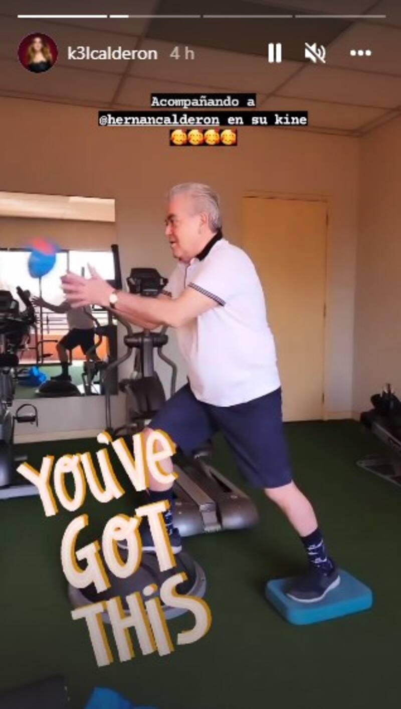 “Acompañando a @HernanCalderon en su kine”, escribió la influencer mientras el abogado hacía ejercicios de fuerza.