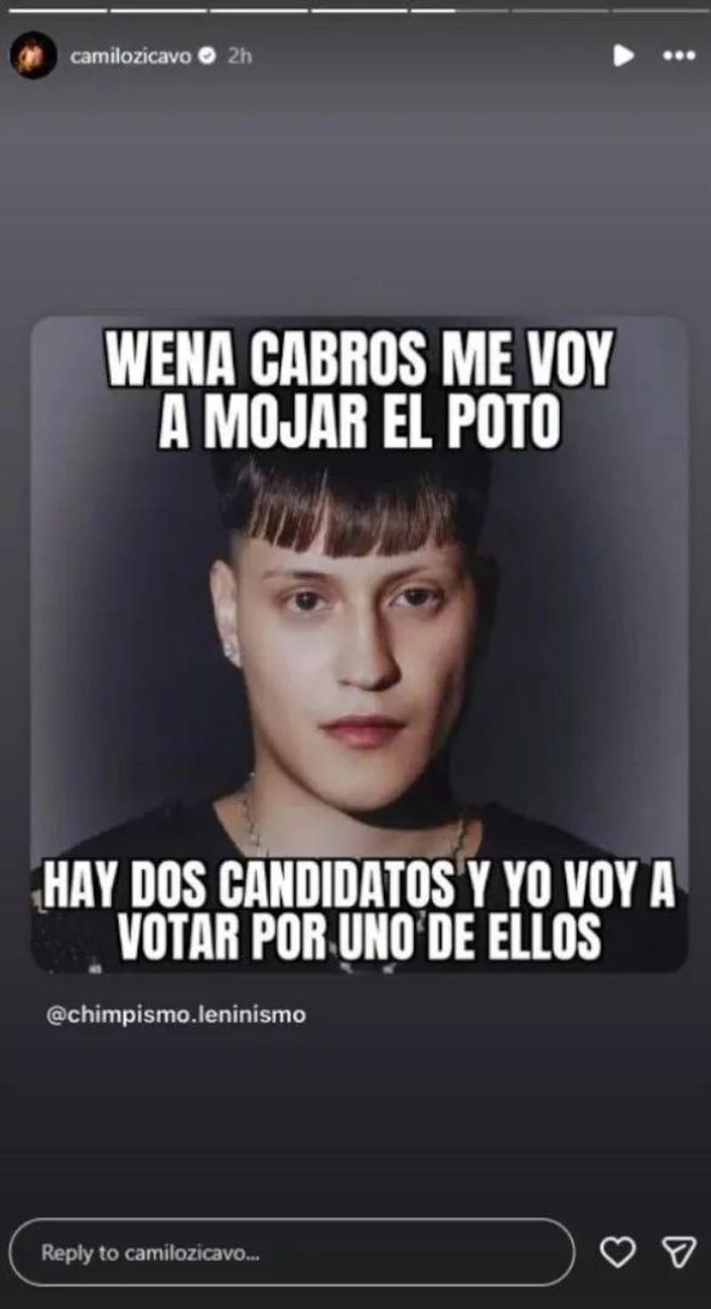 “Wena, cabros, me voy a mojar el pot*. Hay dos candidatos y yo voy a votar por uno de ellos”, se lee en la imagen que ha comenzado a viralizarse.