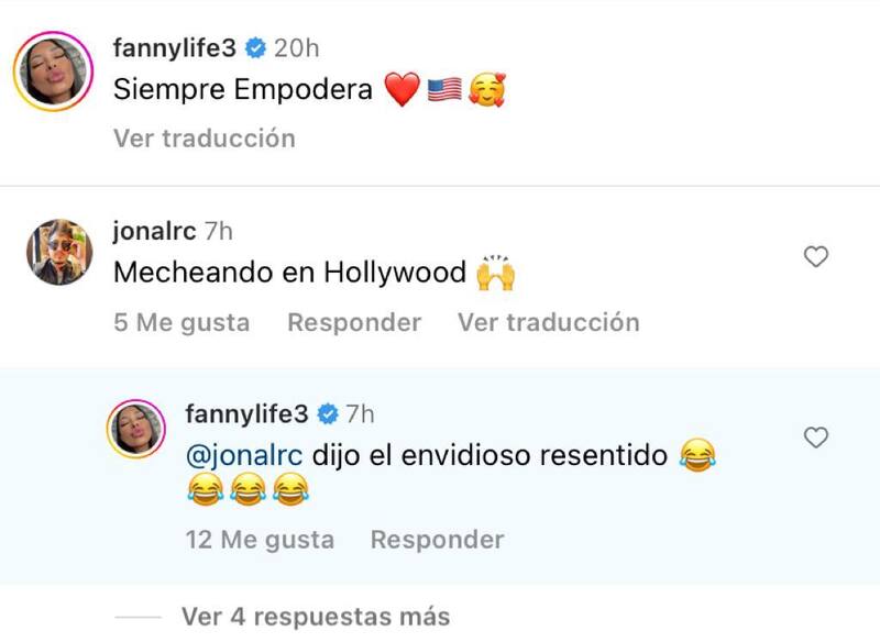 Sin embargo Fanny lejos de quedarse callada, le respondió fiel a su estilo que tanto la caracteriza. “Dijo el envidioso resentido”, manifestó.