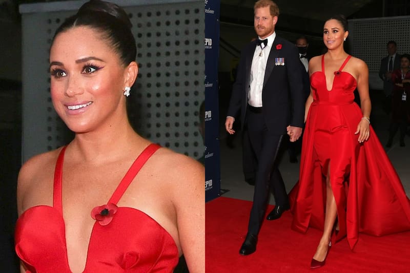 Markle llevó un llamativo vestido rojo de Wes Gordon para Herrera, diseño que también usó en 2021, en una de las primeras apariciones públicas que hizo tras dar la bienvenida a su hija, la princesa Lilibet.