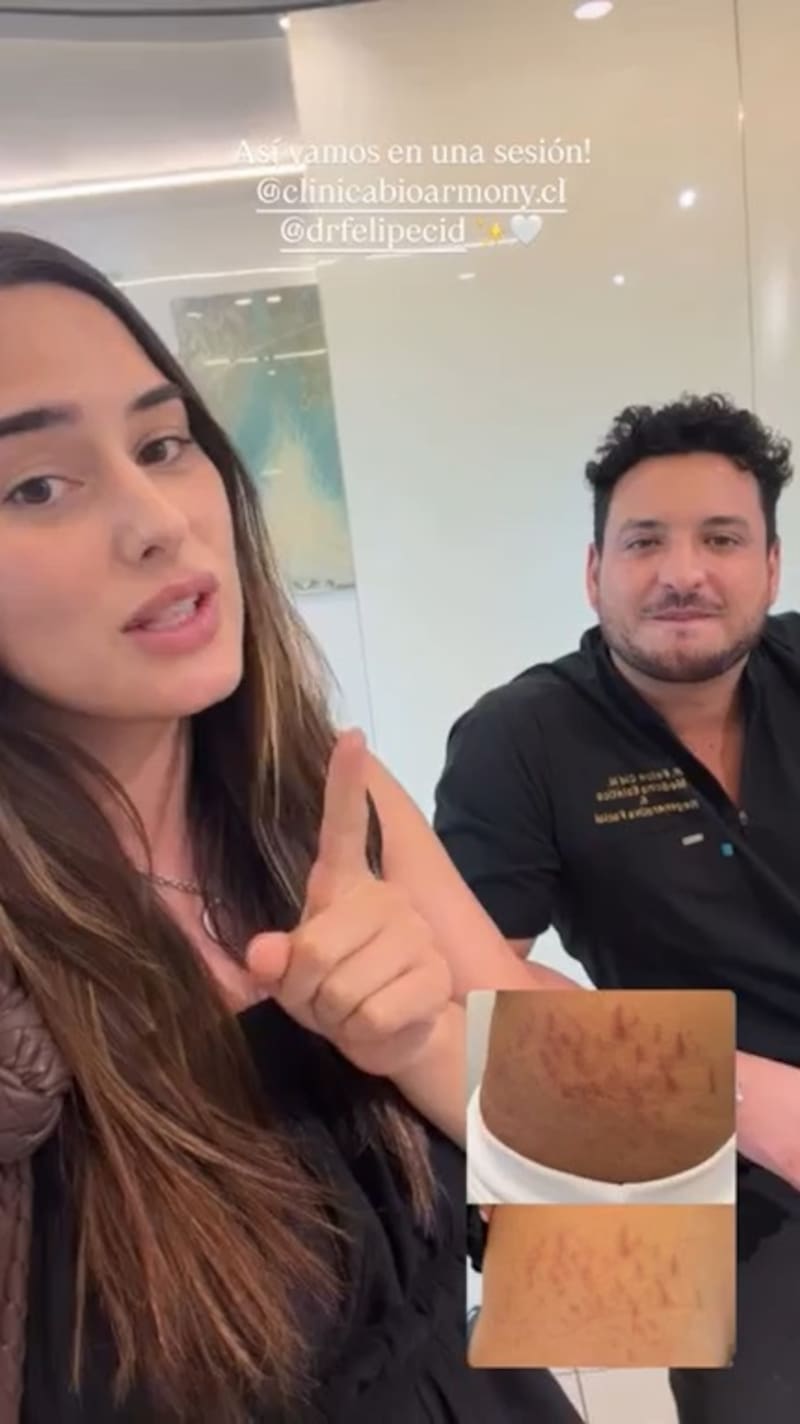 La trasandina explicó que se realizó un tratamiento de bioestimulación celular con el doctor Felipe Cid. En sus historias de Instagram, Melina entregó detalles sobre el procedimiento y compartió una postal mostrando el antes y después de su piel.