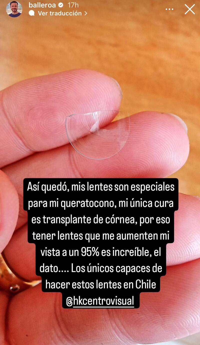 “Hoy sentí angustia mal, se me apretó el pecho. Cuando saqué mi lente de contacto para limpiarlo, el de mi ojo izquierdo, donde tengo 20% de vista (en el derecho tengo solo 10), se me rompió”, se desahogó el exgerente de marketing de Canal 13 en su cuenta de Instagram.
