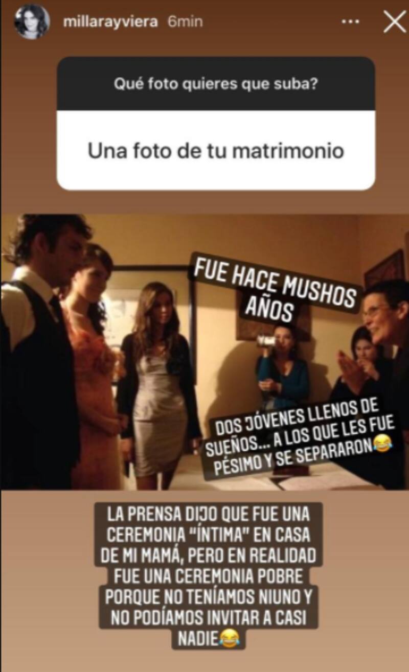 Un(a) seguidor(a) le pidió en el recuadro de preguntas que compartiera una foto de su matrimonio. Tras cartón, Milla subió una de la recordada ceremonia con el ex Bunkers y un detalle que no mucho conocían.