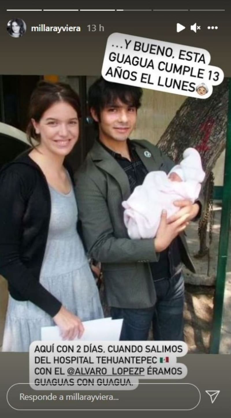 A días de que la chica cumpla años, la presentadora de TV compartió en sus historias de Instagram algunas fotografías del recuerdo en que se ve a Julieta cuando era apenas una bebé, sostenida por sus orgullosos padres. "Aquí con dos días, cuando salimos del hospital de Tehuantepec (México). Con el Álvaro López éramos guaguas con guagua", escribió Millaray.