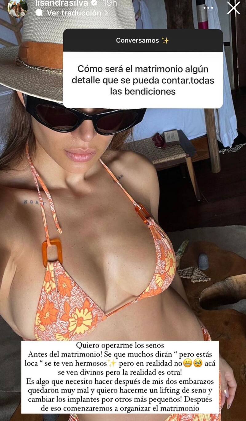 “Quiero operarme los senos antes del matrimonio”, le contó a sus seguidores y seguidoras en una historia que compartió en su cuenta de Instagram.