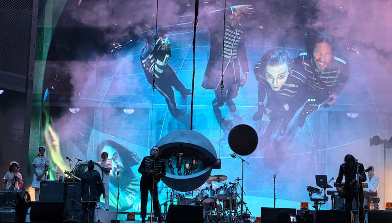 Con la banda perfectamente caracterizados, un ojo que lo veía todo y pantallas en constante cambio, uno de los puntos más relevantes sin duda fue el dominio de Gerard Way y su teatralidad sobre el escenario. Aquello fue algo que le permitió entrar en personaje por completo y expresarse no solo con su voz, sino que también con sus posturas e incluso con sus ojos.