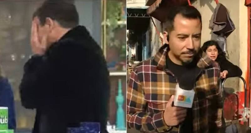 Periodista Rodrigo Pérez optó por alejarse de la mujer, mientras que el animador trataba de mantener la compostura en el estudio.
