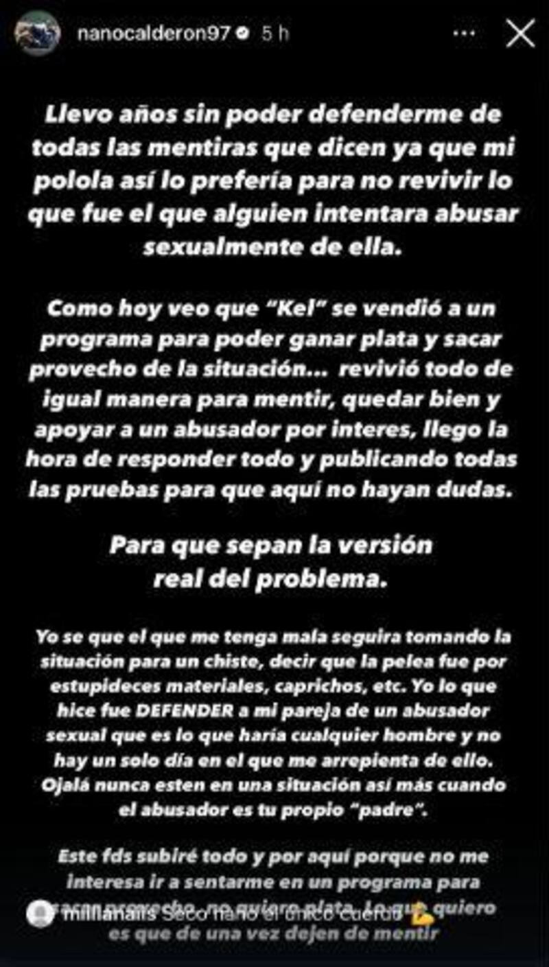Por Paloma ParejaNano Calderón respondió sin tapujos a declaraciones de Kel: “Lo que hice fue defender a mi pareja de un abusador sexual”