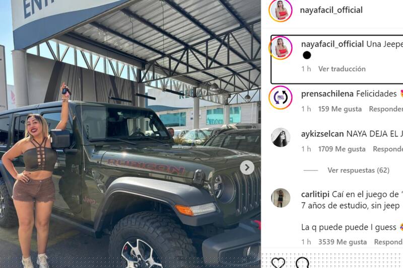 El nuevo vehículo de la influencer es un Jeep Wrangler, modelo Rubicon, que de acuerdo con la misma página web de la automotora está avaluado en $65.990.000 millones de pesos.