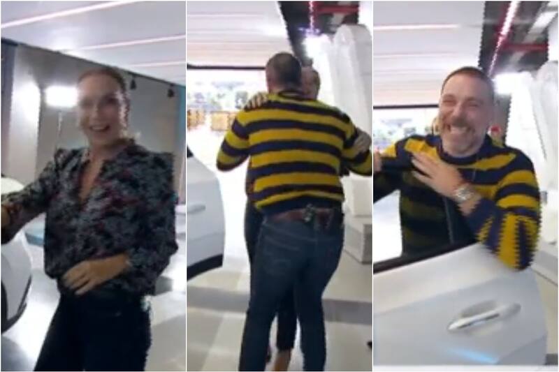 Inmediatamente, ella dice: “Quiero saludar a mi animador que me va a acompañar”, apuntando al interior del automóvil. En ese momento, Neme dice: “¡Ándate! Aquí tenemos al Rafa Araneda”.