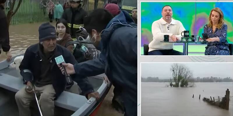 La mañana de este lunes, un equipo del matinal Mucho Gusto se trasladó hasta la comuna de Licantén, región del Maule, y se encontraba reporteando en la zona debido a las inundaciones que han afectado al sector en medio del sistema frontal.