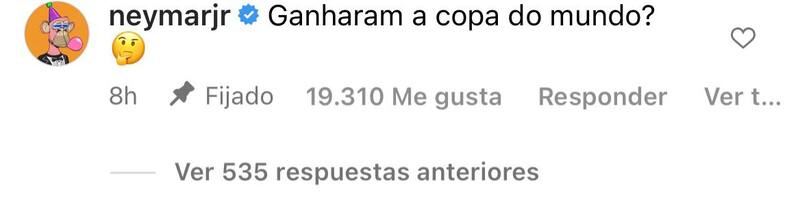 “¿Ganaron la Copa del Mundo”, escribió “Ney” junto a un pensativo emoticón en una cuenta de Instagram que compartió el registro de los festejos.