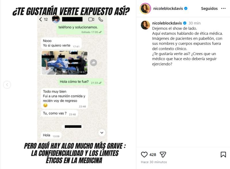 Tras publicar una denuncia contra el cirujano plástico Pedro Vidal, Nicole Block respondió a las críticas compartiendo supuestas nuevas pruebas que avalarían sus dichos.