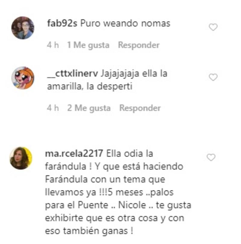 Ahora las pesadeces vuelven a recaer sobre Nicole tras apoyar al Estallido social de una manera muy particular