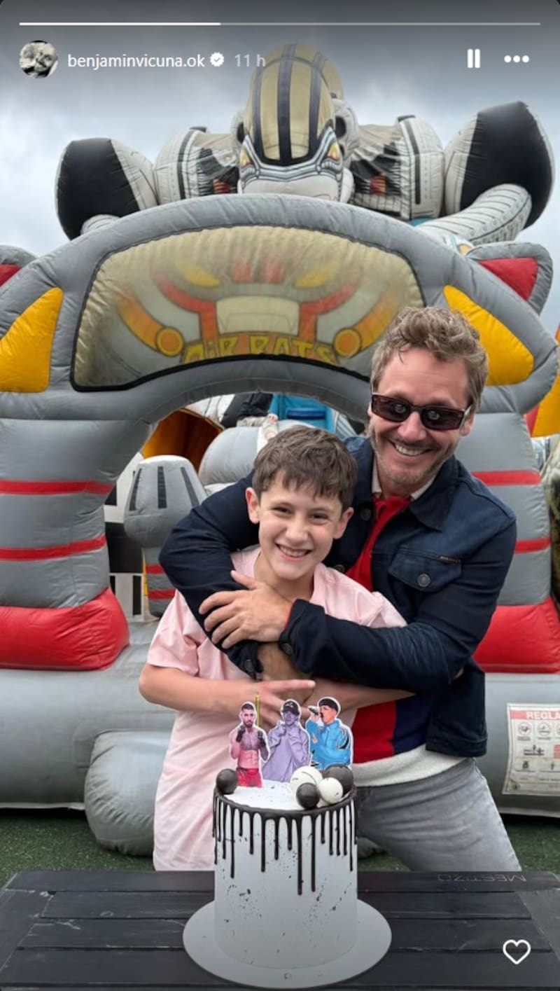 En sus historias de Instagram, el actor compartió una postal del cumpleaños de su hijo, donde aparece abrazando a Benicio junto a la torta.