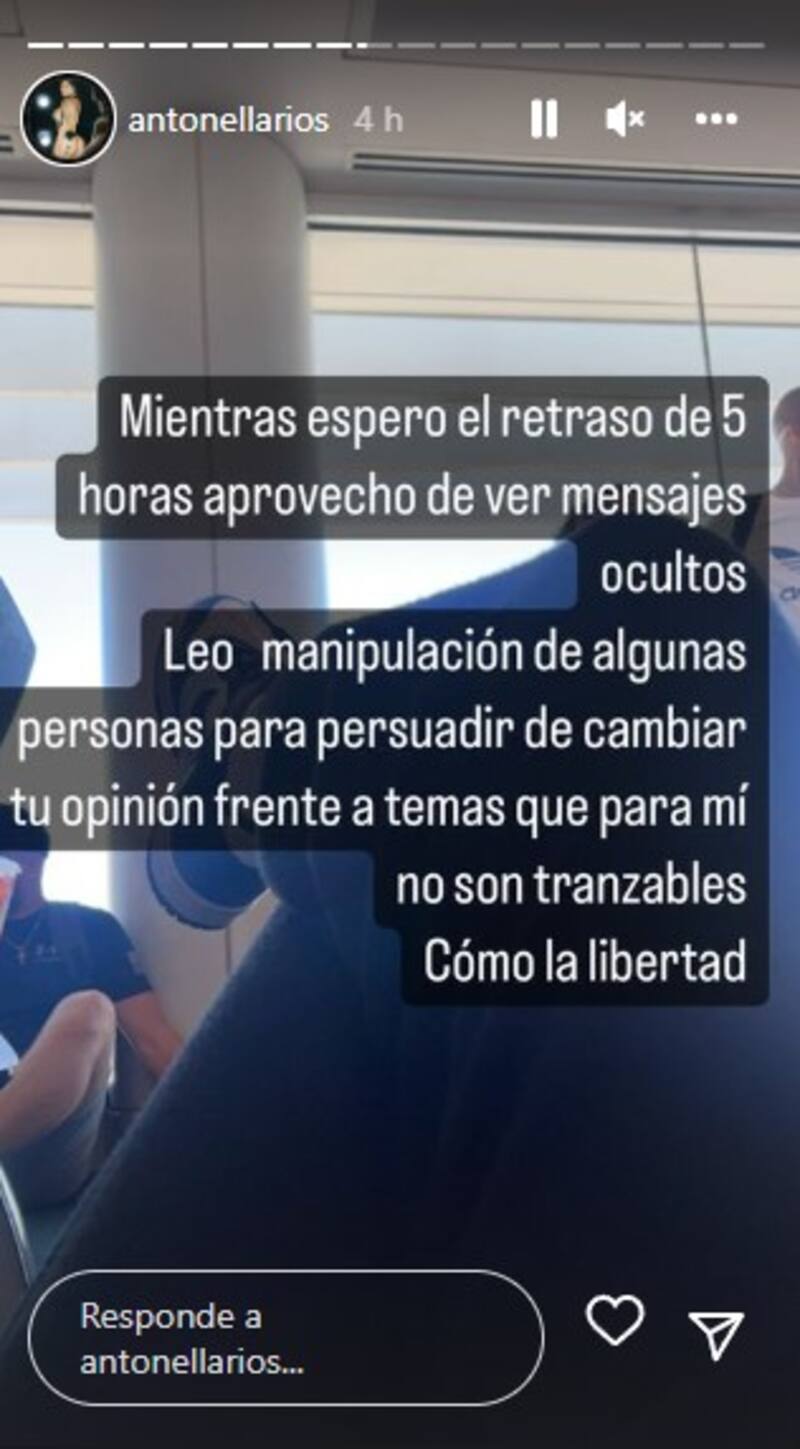 “Mientras espero el retraso de 5 horas aprovecho de ver mensajes ocultos. Leo manipulación de algunas personas para persuadir de cambiar tu opinión frente a temas que para mí no son transables, como la libertad”, detalló.