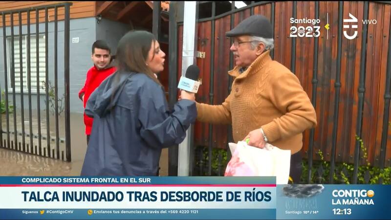 La periodista se encontraba conversando con algunos vecinos del sector de Talca, por el sistema frontal que azotó la zona centro sur del país y dejó a la ciudad con sus calles inundadas.