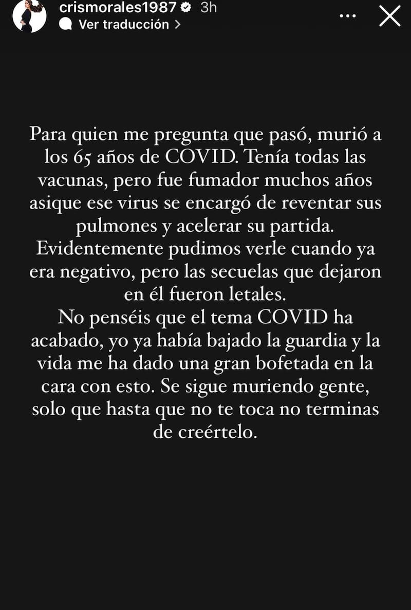 Pero eso no es todo. Para quienes tenían dudas, Cristina reveló que fue el maldito coronavirus el que acabó con la vida de su progenitor.