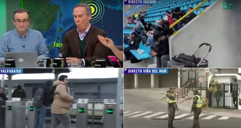 “Fíjate que estaba revisando la información en Japón, que puede ser la anticipación de lo que podemos recibir nosotros. Y más allá de pensar que ya pasó, siguen las marejadas… las marejadas siguen siendo anormales, por decirlo de alguna forma, o el movimiento del mar sigue siendo anormal pese de que ya han pasado 15 horas”, alcanzó a decir antes de ser interrumpido por Doggenweiler.