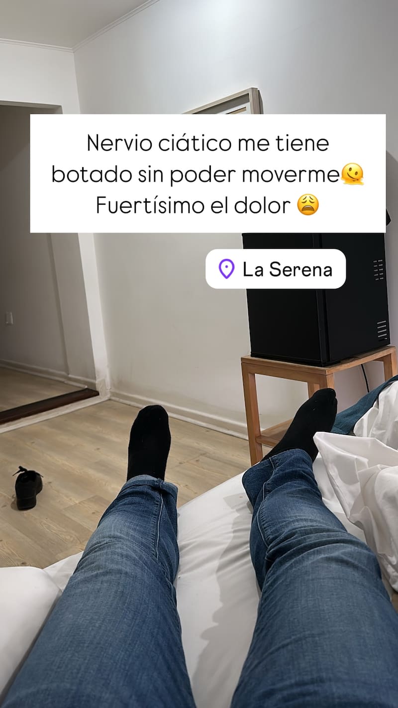 A través de sus historias de Instagram, el periodista compartió una postal en una cama. “Nervio ciático me tiene botado sin poder moverme”, escribió junto al registro.