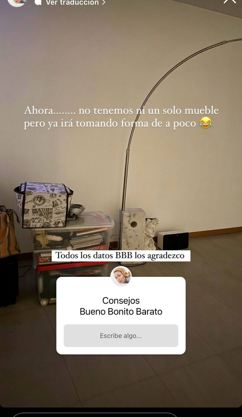 “Ahora... no tenemos ni un solo mueble, pero ya irá tomando forma de a poco. Todos los datos buenos, bonitos y baratos los agradezco”, bromeó la ex panelista del Bienvenidos sobre el nuevo proyecto en conjunto con el actor.