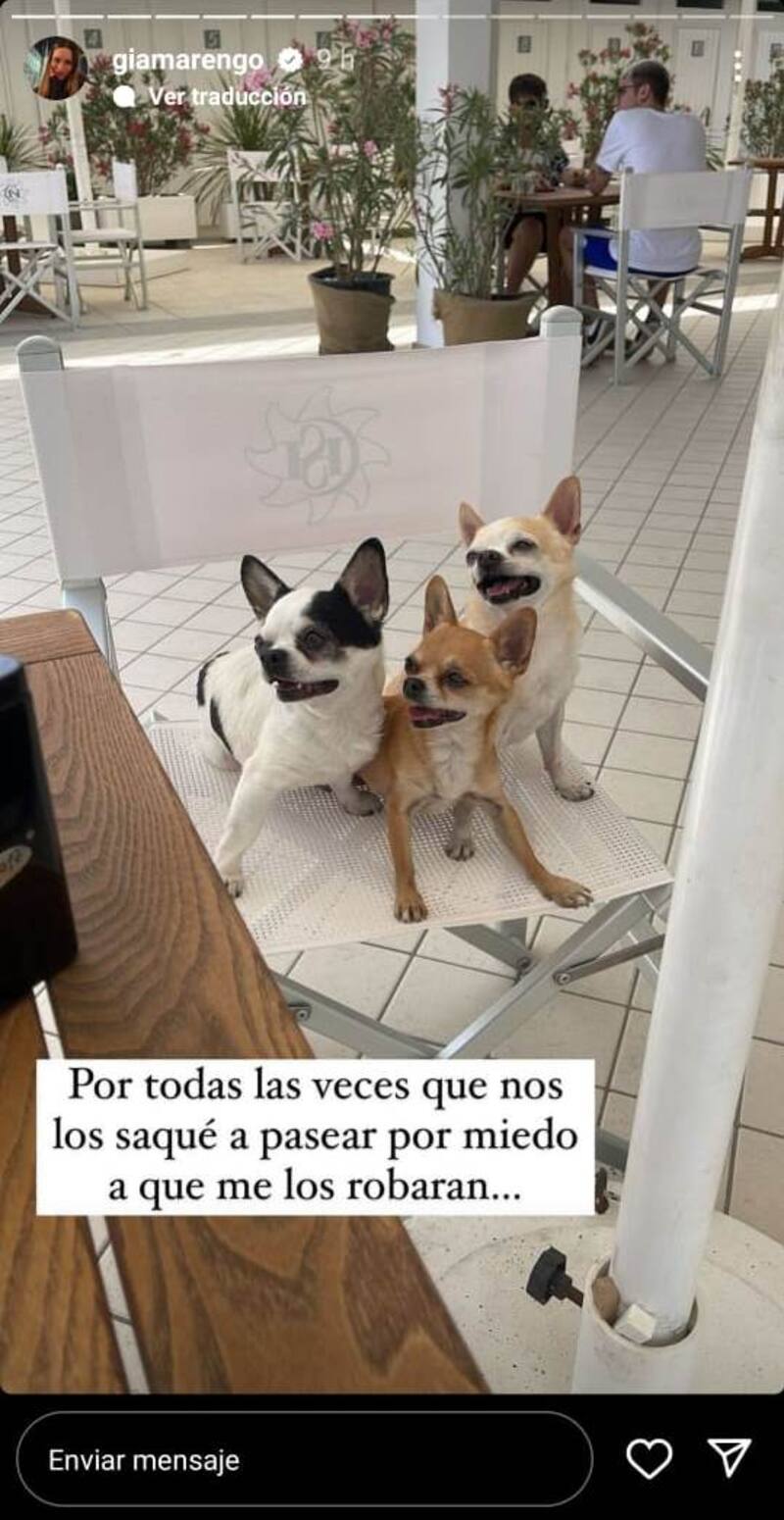“Ahora son unos perritos viajeros y amo verlos así… Es todo lo que me llena el alma. Por todas las veces que los saqué a pasear por miedo a que me los robaran…”, agregó mostrando a sus perritos y lo felices que viven en el extranjero.