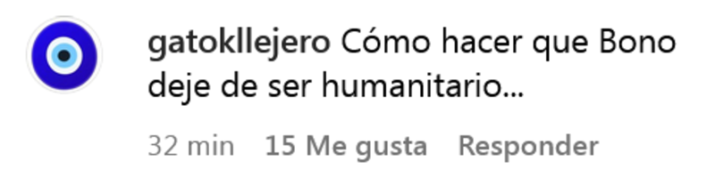 “Úsenme como botón de “desver”, reaccionó Consuelo Margarita en Instagram. En tanto, Gatokllejero dijo que la interpretación es una muestra de “cómo hacer que Bono deje de ser humanitario”.