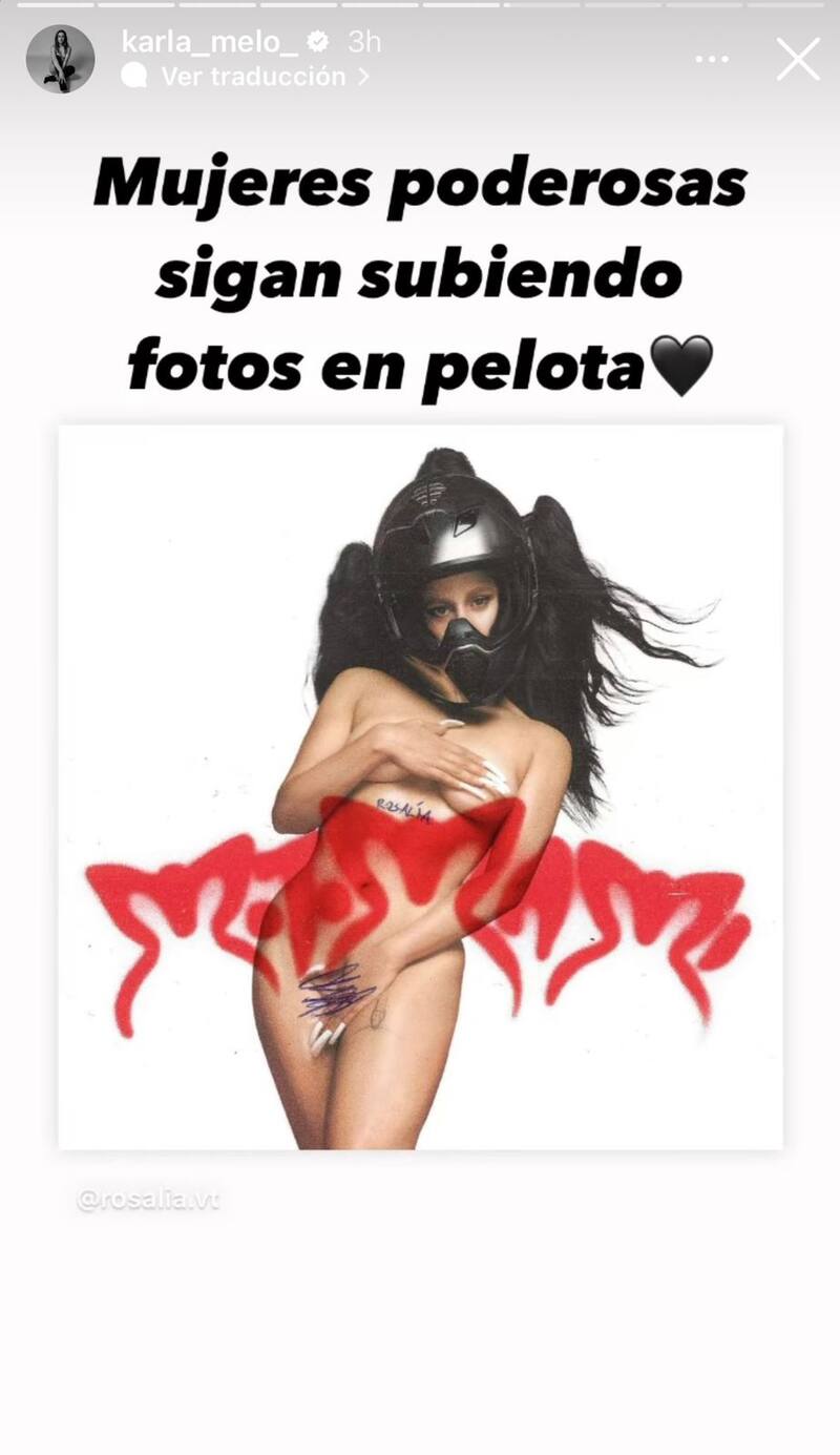 Además, subió otra storie para “aleonar” a las mujeres a que no tenerle miedo a la censura. “Sigan subiendo fotos en pelota”, escribió al compartir una instantánea de Rosalía.