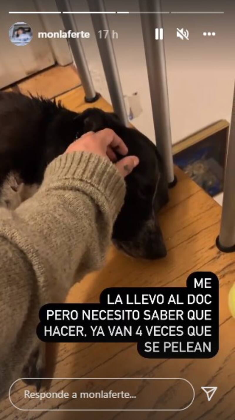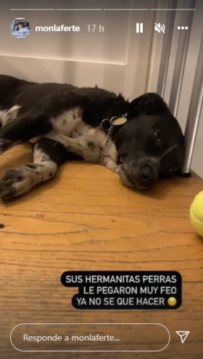 En el registro publicado en sus historias se ve a su perrita Nina tirada en el piso, muy triste luego de haber sido atacada por sus “hermanas”.
