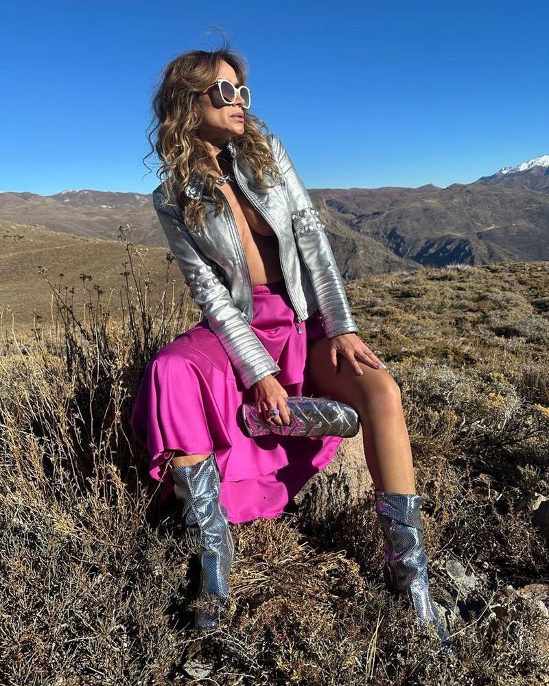 La actriz subió varios registros vistiendo una chaqueta metalizada pero sin nada debajo. Eso sí, cuidando muy bien de no mostrar demás, porque de lo contrario, Instagram la censuraría.