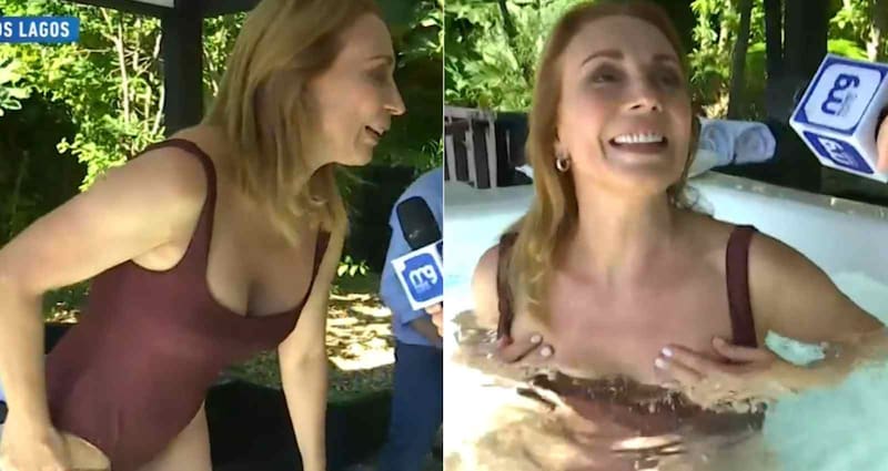 De visita por Frutillar, en la Región de Los Lagos, Karen Doggenweiler sorprendió en vivo al ingresar a un jacuzzi de un hotel local.