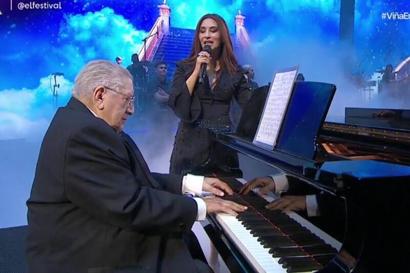 El legendario y querido pianista participó en la presentación de la cantante chilena sobre la Quinta Vergara durante la interpretación de la clásica canción “Se Me Fue”.