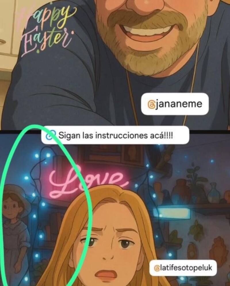 Tal como se puede ver en la postal, que pasó por el filtro de Studio Ghibli, una niña sonriente parece asomarse en medio del programa. A juicio de Latife, nada para alertarse.