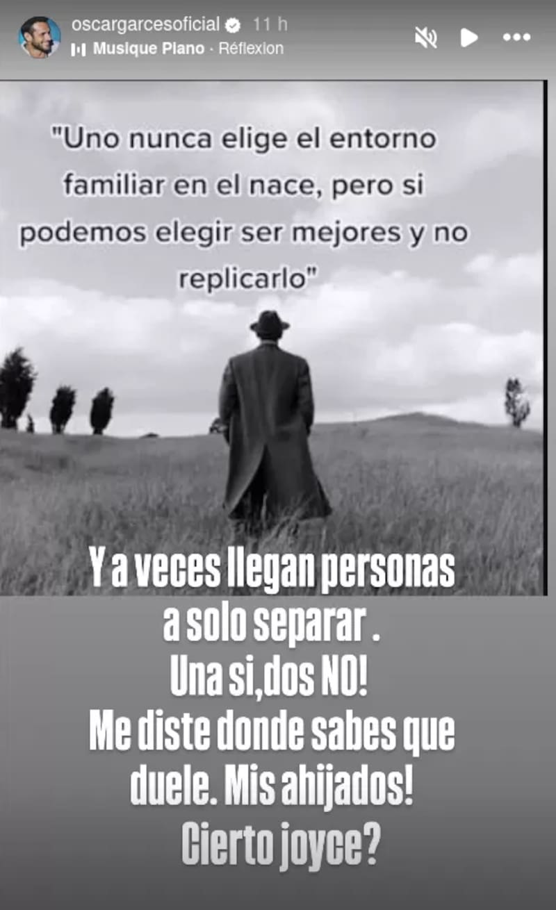 Por Bernardita VillaÓscar Garcés compartió duro mensaje contra su cuñada Joyce Castiblanco: lo borró y se disculpó