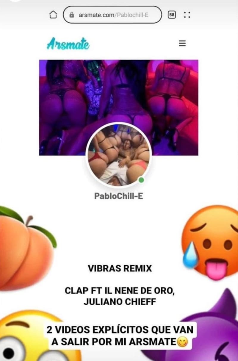 Una curiosa y erótica forma de lanzar material realizará Pablo Chill-E, quien mediante Instagram reveló que publicará los videos de “Vibras remix” y “Clap” feat. Il Nene de Oro y Juliano Chieff en Arsmate, una plataforma para vender contenido hot.