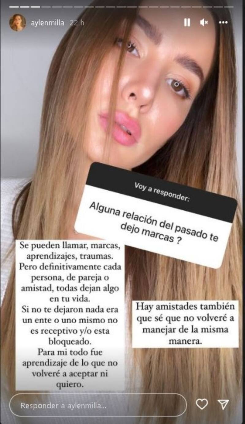 La ex chica reality, Aylén Milla sorprendió a sus seguidores tras compartir en sus redes sociales una particular reflexión.