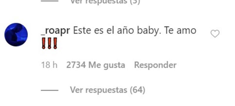 El también cantante respondió en la publicación de Paloma. "Este es el año baby. Te amo". Y nuevamente ella le responde que lo ama junto con un símbolo de mamadera.