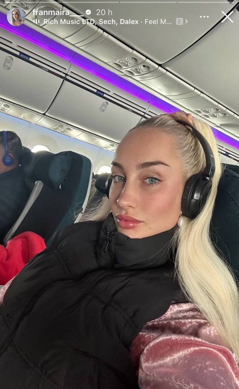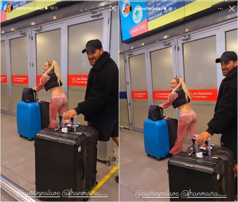 La comunicadora subió un video en el que se ve a la pareja junto a sus maletas en el aeropuerto de Santiago: “¿Qué hacen en mi país si ustedes son peruanos? ¡Ay pero que viva el amor!”, les lanza Díaz, haciendo referencia a la nacionalidad del modelo. Por otro lado, Fran Maira también compartió una selfie dentro del avión.