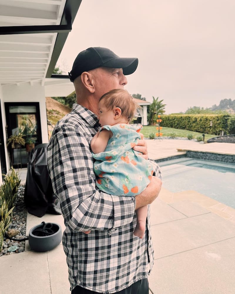 La joven compartió unas imágenes de su papá, Bruce Willis, junto a su pequeña hija en los brazos, quien es también la primera nieta del actor, Lou.