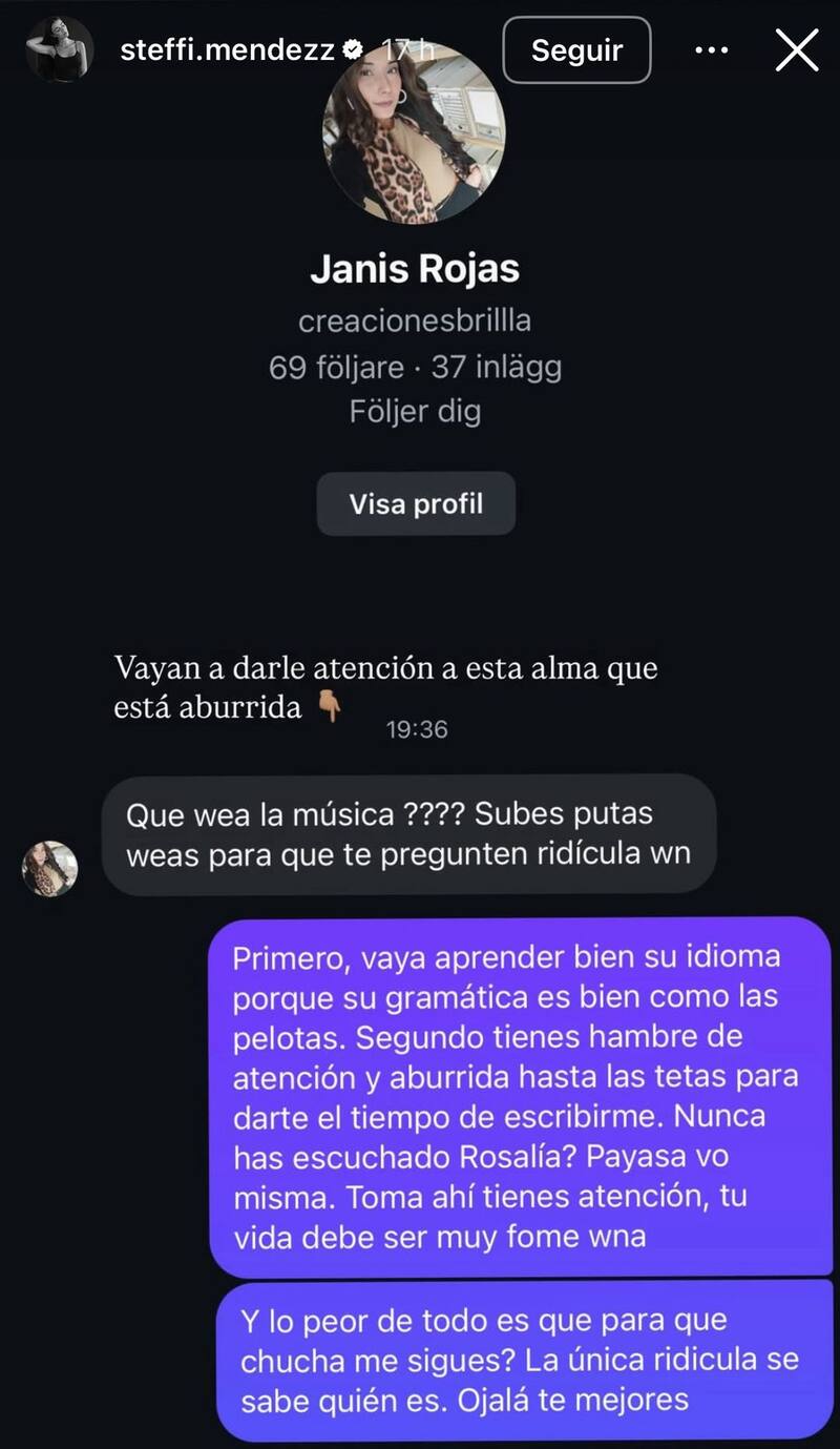 “Qué hue... la música? Subes puras hue... para que te pregunten ridícula”, fue el comentario sin filtro que le dejaron a través de los mensajes privados.