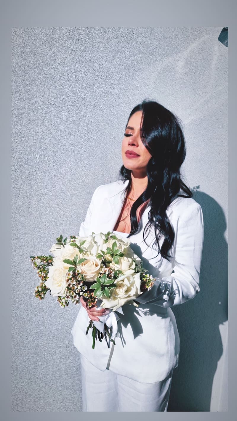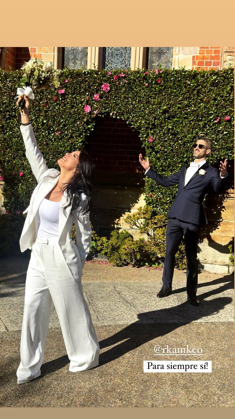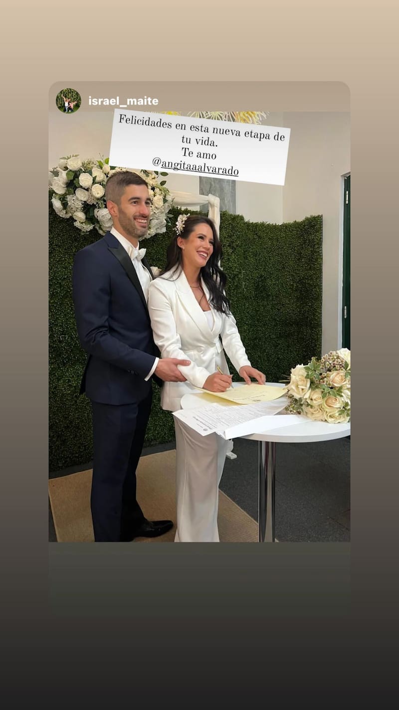 A través de sus historias de Instagram, Angie compartió algunas imágenes de la íntima boda que celebraron junto a sus familiares. Ella vestida de chaqueta y pantalón blanco. Él, de traje azul marino y camisa blanca.